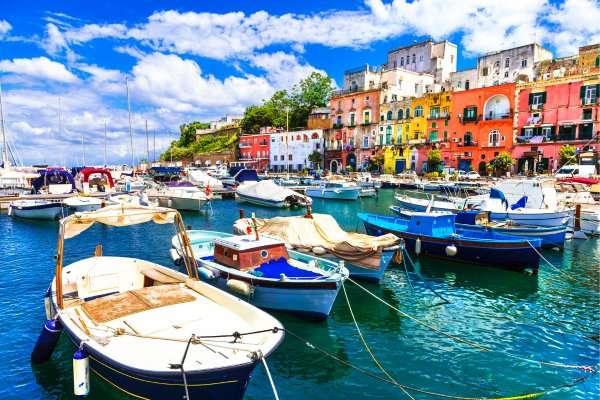 Finally, finish your sailing itinerary and set sail back towards Procida, a charming island off the coast of Naples. Upon arrival stroll through the colourful Marina Corricella, known for its picturesque fishing village ambience. Admire the vibrant houses stacked along the waterfront and watch the local fishermen at work. Head up to Terra Murata, the highest point on the island. Explore the narrow streets and historic buildings of this ancient fortified village. Don't miss the panoramic views of the island and the Bay of Naples from the terrace of the Santa Margherita Vecchia church. Stop for lunch at a traditional trattoria and savour some authentic Neapolitan cuisine. Try local specialities like spaghetti alle vongole (spaghetti with clams), fresh seafood, or pizza made with Procida's famous local ingredients. After lunch, head to Spiaggia Chiaiolella, one of Procida's most popular beaches. Relax on the golden sands, swim in the crystal-clear waters, or rent a kayak or paddleboard to explore the coastline, hidden coves, and sea caves. Marvel at the colourful cliffs and rock formations, and stop for a swim in the refreshing waters of the Tyrrhenian Sea. Make a stop at the Abbey of San Michele Arcangelo, a stunning 11th-century monastery perched on a cliff overlooking the sea. Explore the beautiful cloister and chapel, and take in the peaceful atmosphere of this sacred site. Enjoy dinner with a view at one of the waterfront restaurants in Marina Corricella.