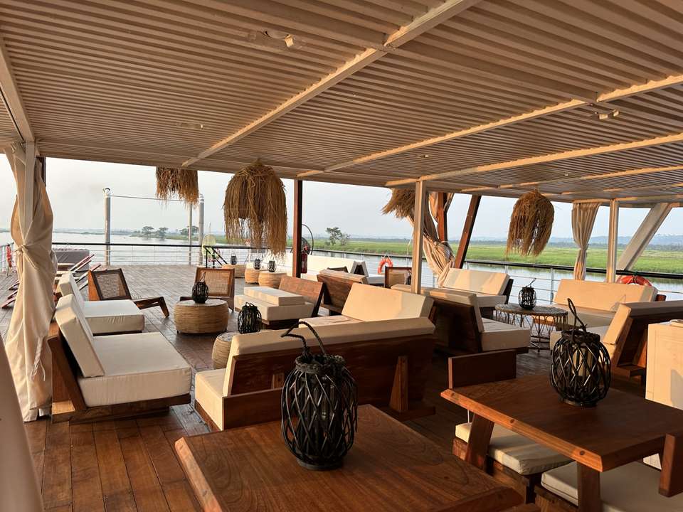 Built in 2017, this river expedition ship is 52 metres long and 11 metres wide (with around 600m² of shared space). She is currently being refurbished to become a 4* (local standards) vessel from January 2024, perfectly suited to river safari cruises. Thanks to its new, lighter materials and 2 new-generation engines, noise pollution and fuel consumption have been significantly reduced. Her relatively flat hull allows it to get as close as possible to the banks of the river, so you can scan the landscape from the observation deck. You'll appreciate the friendly atmosphere on board and the various comfort areas, such as the outdoor jacuzzi and bar.