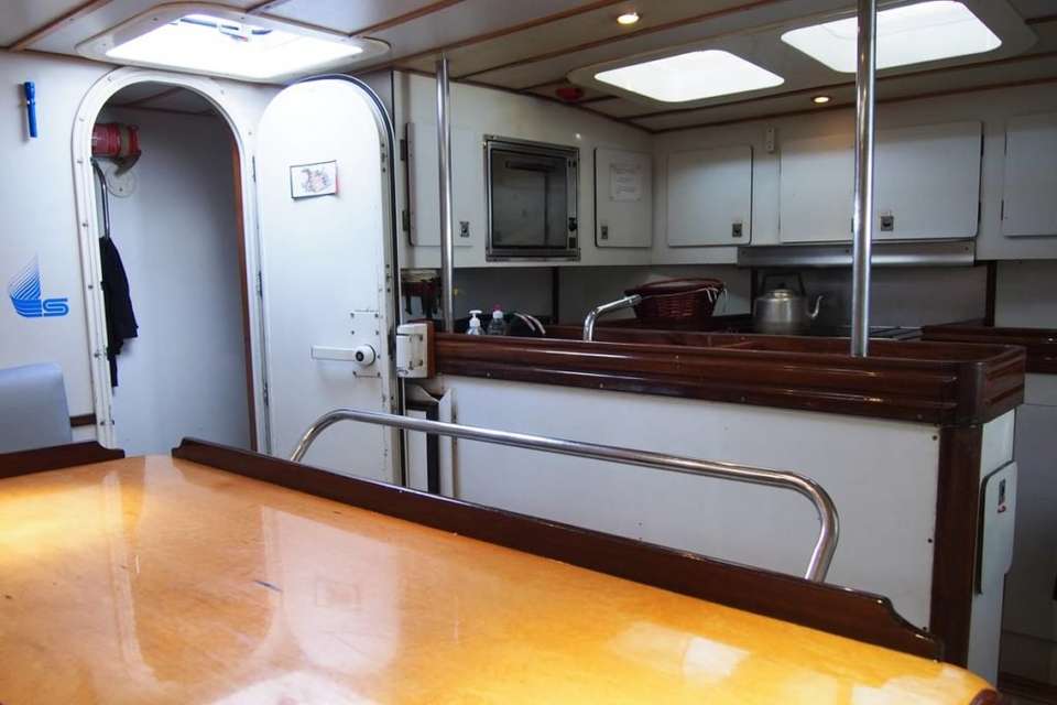 What better way to cross the Atlantic than aboard a 21-metre Challenge 67. This former ocean-racing monohull, designed to sail around the world, is extremely reliable offshore. At the helm, you'll have a great feeling and good visibility when maneuvering. You can also relax in the saloon. There's plenty of room for all the crew to enjoy a meal together.